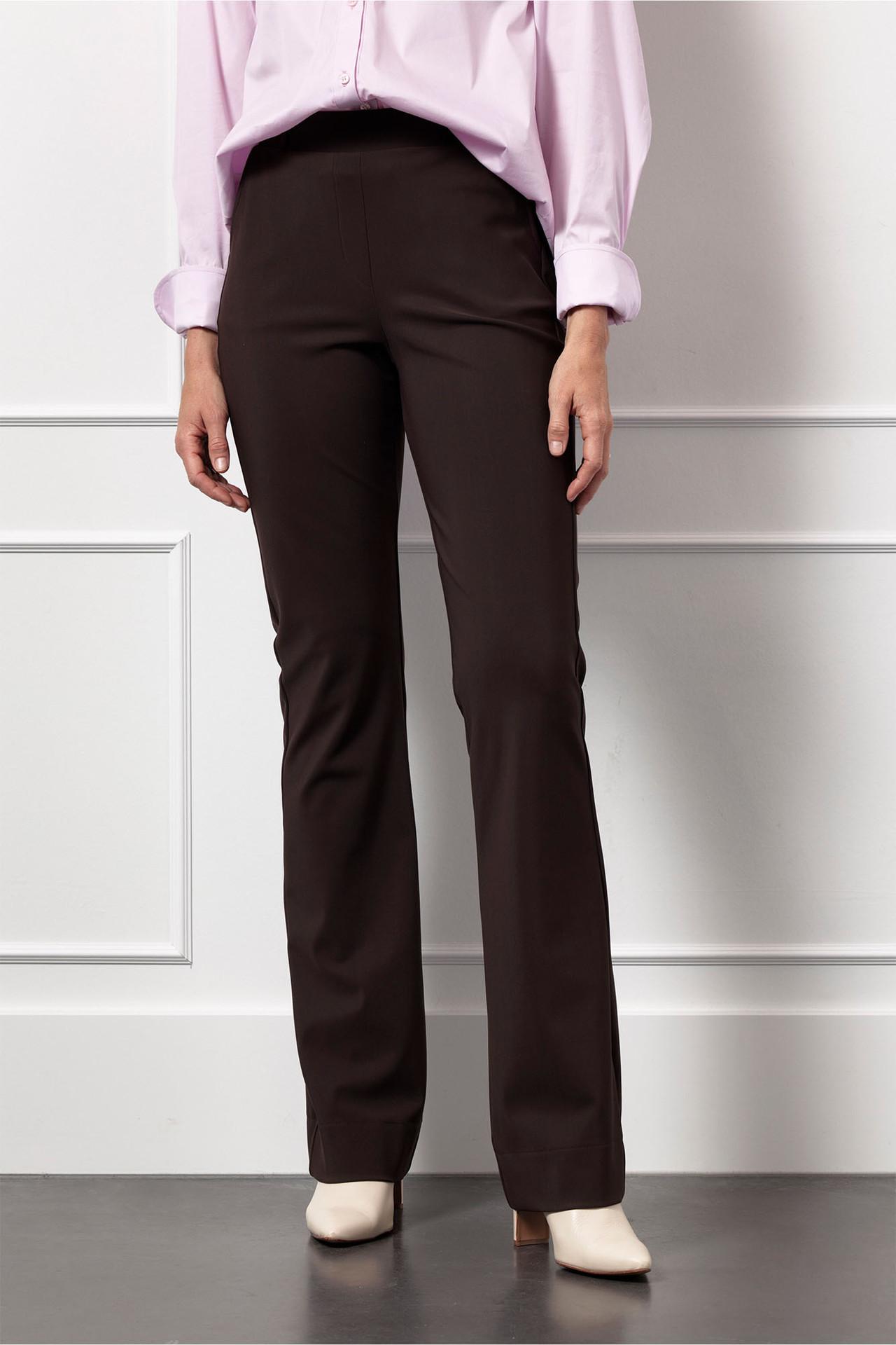 De Flair LONG bonded trousers van Studio Anneloes is een elegante essential met poweruitstraling. De flared pijpen, luxe Travelstof en rijke kleur Espresso maken dit een echte eyecatcher. Dankzij de extra lengte is deze broek perfect voor lange vrouwen en eindeloos te stylen.