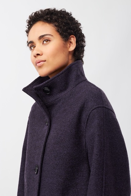 Coat Pennfield – een korte jas in de stijl van de jaren 60 met opstaande kraag en grote knopen. De extra mouwen bieden ruimte voor moderne breisels. Met een premium 3-laags constructie van 100% biologische wol aan de buitenkant, een polyurethaanmembraan ertussen en 100% biologisch katoen aan de binnenkant, beschermt deze jas tegen wind en biedt uitzonderlijke warmte. De 4 grote kenmerkende knopen geven het minimalistische ontwerp zijn look.
