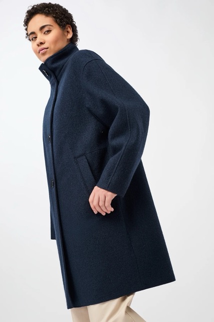 Coat Pennfield – een korte jas in de stijl van de jaren 60 met opstaande kraag en grote knopen. De extra mouwen bieden ruimte voor moderne breisels. Met een premium 3-laags constructie van 100% biologische wol aan de buitenkant, een polyurethaanmembraan ertussen en 100% biologisch katoen aan de binnenkant, beschermt deze jas tegen wind en biedt uitzonderlijke warmte. De 4 grote kenmerkende knopen geven het minimalistische ontwerp zijn look.