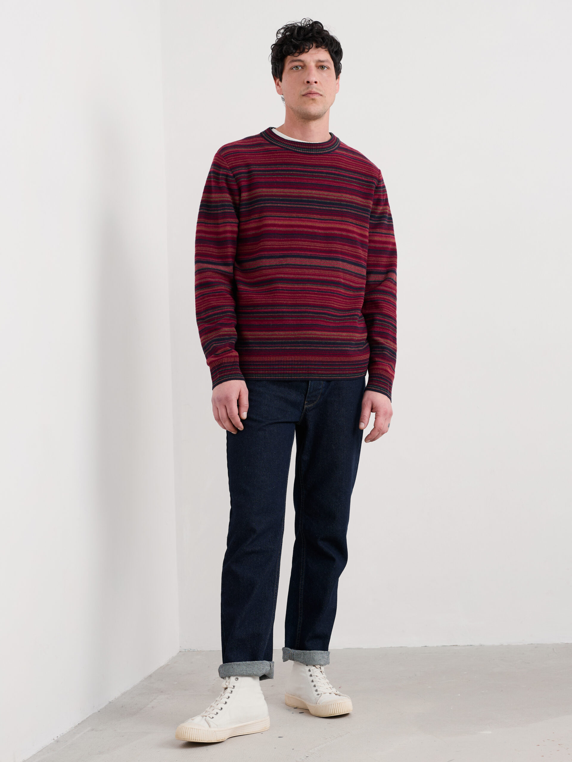 Onze gestreepte Notebook-trui is gemaakt van een rijke lamswolmix en is zacht en soepel om te dragen. De lichte brei is warm zonder te verzwaren, waardoor dit het perfecte kledingstuk is voor koelere dagen. We hebben tricotsteek gebruikt voor een subtiel gestructureerd gevoel, terwijl de geribbelde boorden bij de ronde hals, manchetten en zoom de trui een klassieke afwerking geven.
