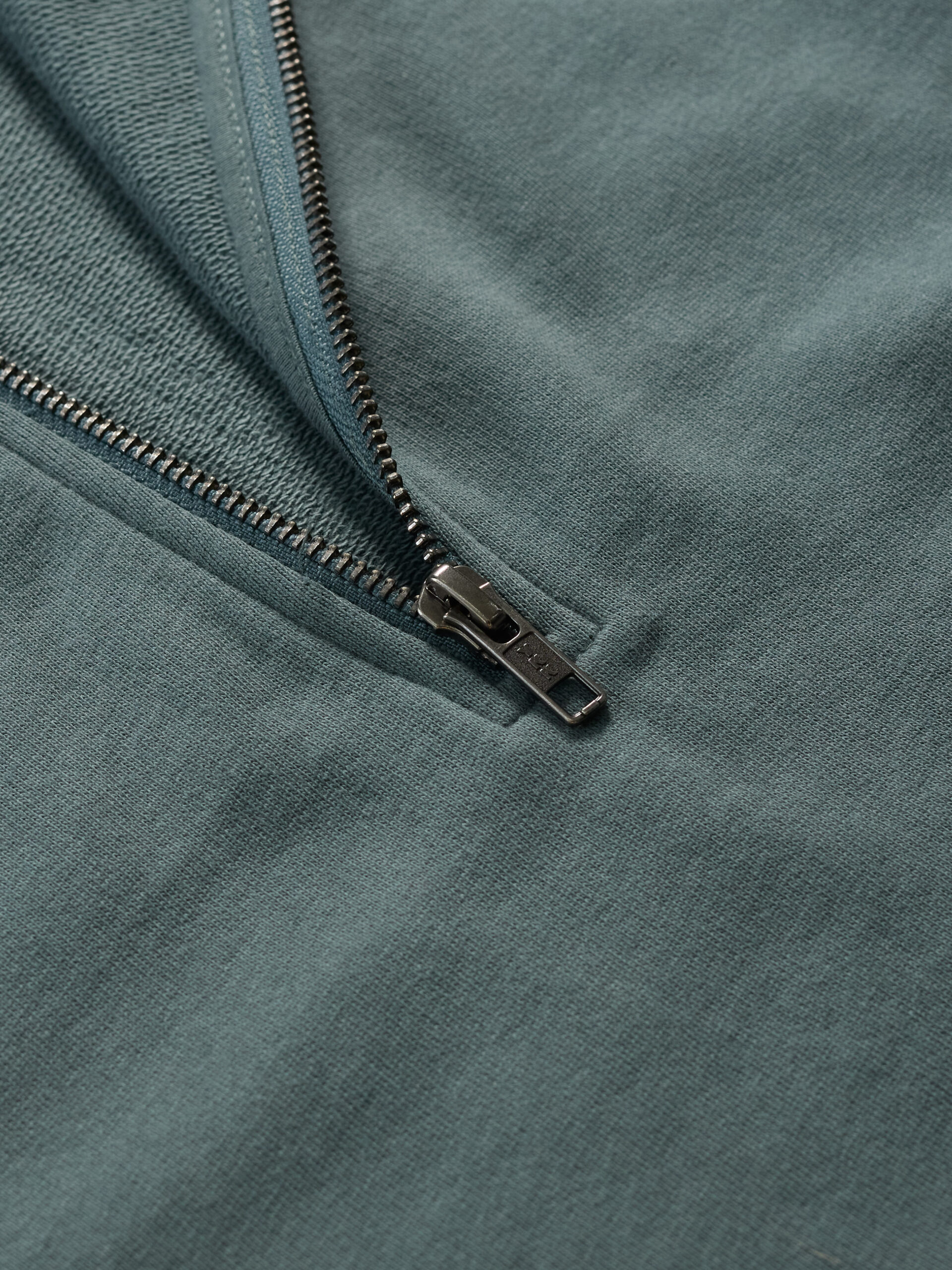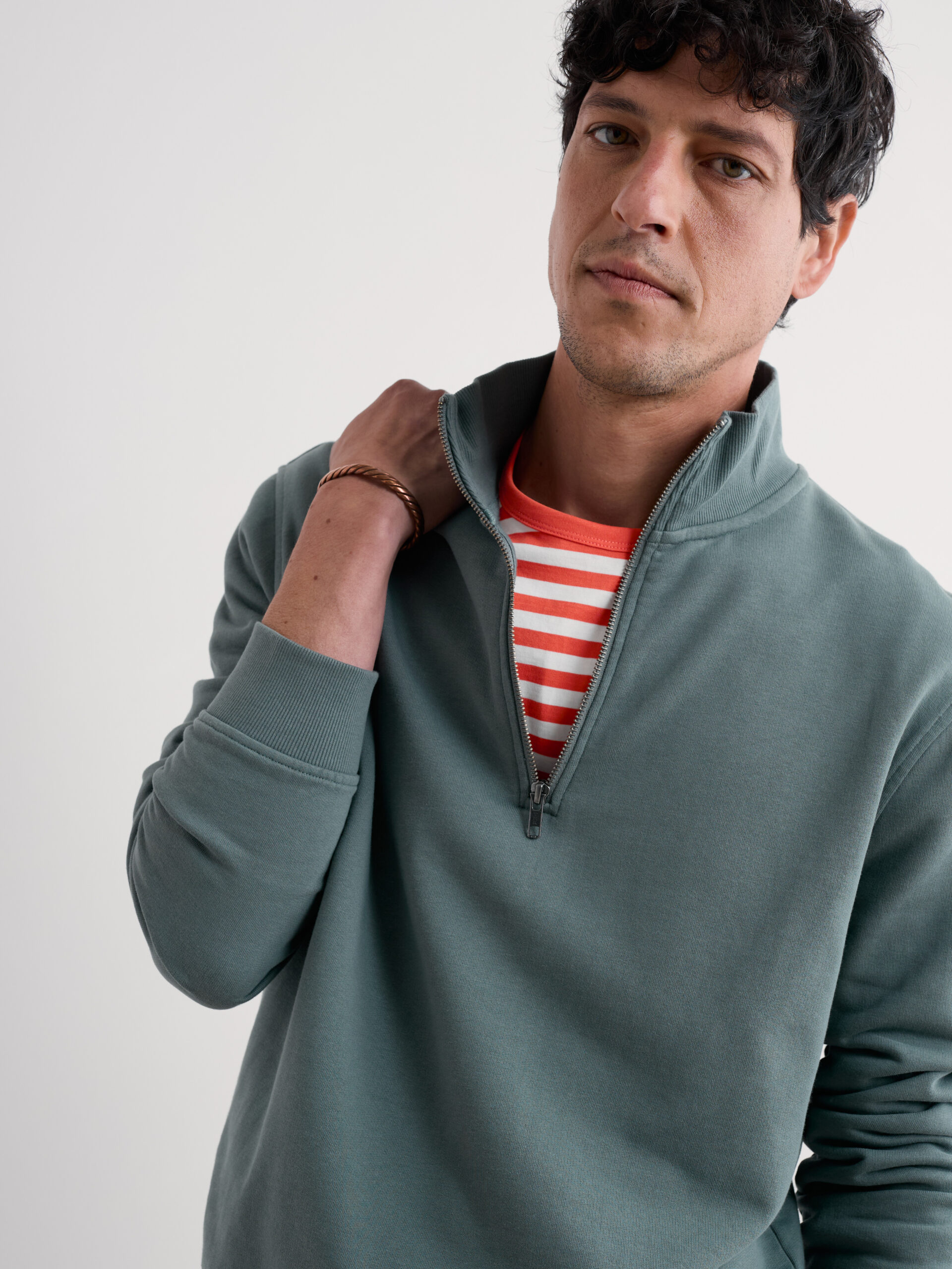 De perfecte dagelijkse sweater, met een hoge kraag met rits en een diepe rib bij de manchetten, zoom en halslijn. Deze makkelijke laag is gemaakt van loopback biologisch katoenen badstof dat is geverfd met pigment, waardoor het een ingedragen kleur krijgt die bij elke keer dragen meer karakter krijgt.